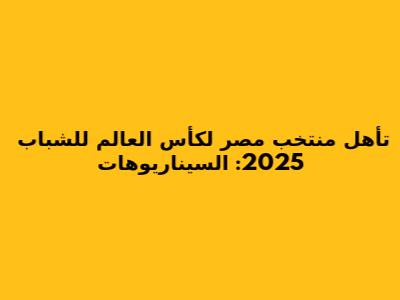 السيناريوهات الرئيسية لتأهل منتخب مصر لكأس العالم للشباب 2025 تتوقف على عدة عوامل، أهمها نتائج المنتخب في التصفيات المؤهلة للبطولة. يجب على المنتخب المصري تحقيق نتائج إيجابية في المباريات المتبقية لضمان التأهل. هناك عدة طرق يمكن للمنتخب من خلالها تحقيق هذا الهدف، بدءًا من الفوز في جميع المباريات وصولًا إلى التأهل كأحد أفضل المنتخبات صاحبة المركز الثاني.